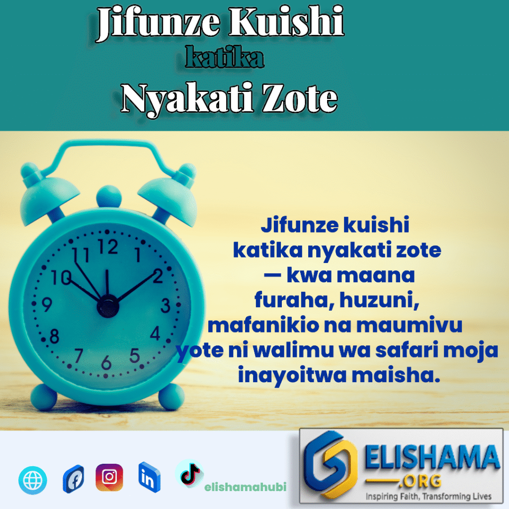 “Hakuna yeyote anayeweza kuongeza muda zaidi katika maisha yake, lakini kila mmoja anaweza kuongeza maisha kwenye muda alio nao.”— Elishama Maisha Si Urefu wa Siku, Bali Undani wa Kuishi Wengi tunahangaika kuongeza muda — tunataka kuishi miaka mingi, tusizeeke haraka, tusiumwe, tusikose muda wa kufanikiwa. Lakini tunasahau kwamba maisha si idadi ya siku ulizoishi, bali ni undani wa uhai uliouweka ndani ya siku zako. Wapo watu walioishi miaka michache, lakini waligusa dunia kwa namna isiyoelezeka. Wengine wameishi miaka mingi, lakini dunia haijawahi kujua waliwahi kuwepo.👉 Swali ni: unatumiaje muda ulio nao leo? Kila Siku ni Zawadi, Si Kawaida Kila asubuhi unapofumbua macho, Mungu anakukumbusha kwamba bado una nafasi ya kufanya jambo lenye maana. Wengine waliomba dakika moja zaidi, lakini haikuwapa nafasi hiyo.Kwa hiyo, usipoteze siku kwa kulalamika, kubishana, au kuogopa.Badala yake, Tazama jua likipambazuka kwa shukrani, Tabasamu kwa mtu mmoja zaidi, Semea neno jema kwa moyo ulioumizwa, Fanya kazi yako kwa moyo kama ibada. Hapo ndipo unapoongeza maisha ndani ya muda wako. Fikiria mwalimu ambaye kila siku anafundisha kwa moyo, akiona watoto wakielewa — hilo ni maisha.Au mama anayepika chakula kidogo lakini kwa upendo, akihakikisha familia inakula — hilo ni maisha.Au kijana anayejitolea kusaidia wazee mtaani — hilo ni maisha. Wote hawa hawajaongeza muda duniani, bali wameongeza uzima kwenye muda wao. Kiroho, Mungu hatuulizi “umeishi miaka mingapi,” bali “umeishi namna gani.”Ameweka ndani yetu roho ambayo haitimizi tu siku, bali inatengeneza athari ya uzima.Wakati tunafanya kila kitu kwa hofu, hasira au mashindano, tunapoteza maisha kwa kasi zaidi kuliko saa inavyokimbia.Lakini tukiamka na moyo wa shukrani, tukapenda zaidi, tukasamehe zaidi, tukatenda kwa imani — basi hata dakika moja inakuwa na thamani ya miaka. Kuna fundi bodaboda mmoja mjini Moshi ambaye kila siku kabla ya kuanza kazi husema, “Leo nitawafanya watu wajisikie salama.”Hajawahi kupata tuzo, hajawahi kuonekana kwenye TV, lakini kila abiria anayepanda anaondoka na tabasamu.Huyo mtu ameongeza maisha katika muda wake — amepanda mbegu za furaha kwa kila safari. Kifalsafa, maisha ni kama taa inayowaka kwa mafuta finyu — hautajua lini yataisha, lakini unaweza kuhakikisha yanawaka kwa mwanga kamili.Kisaikolojia, mtu anayejaza siku zake kwa maana hupata nguvu zaidi ya kuendelea kuishi, hata katikati ya mateso.Kwa hiyo, ongeza maana katika siku zako — si dakika kwenye saa zako. Leo, usiombe Mungu akupe miaka mingi, bali akupe maisha yenye maana ndani ya miaka uliyo nayo.Usiishi tu — ishi kwa moyo, kwa upendo, kwa kusudi, na kwa amani.Kwa sababu mwisho wa siku, tutapimwa si kwa muda tuliokuwa hai, bali kwa uzima tulioutoa kwa wengine.