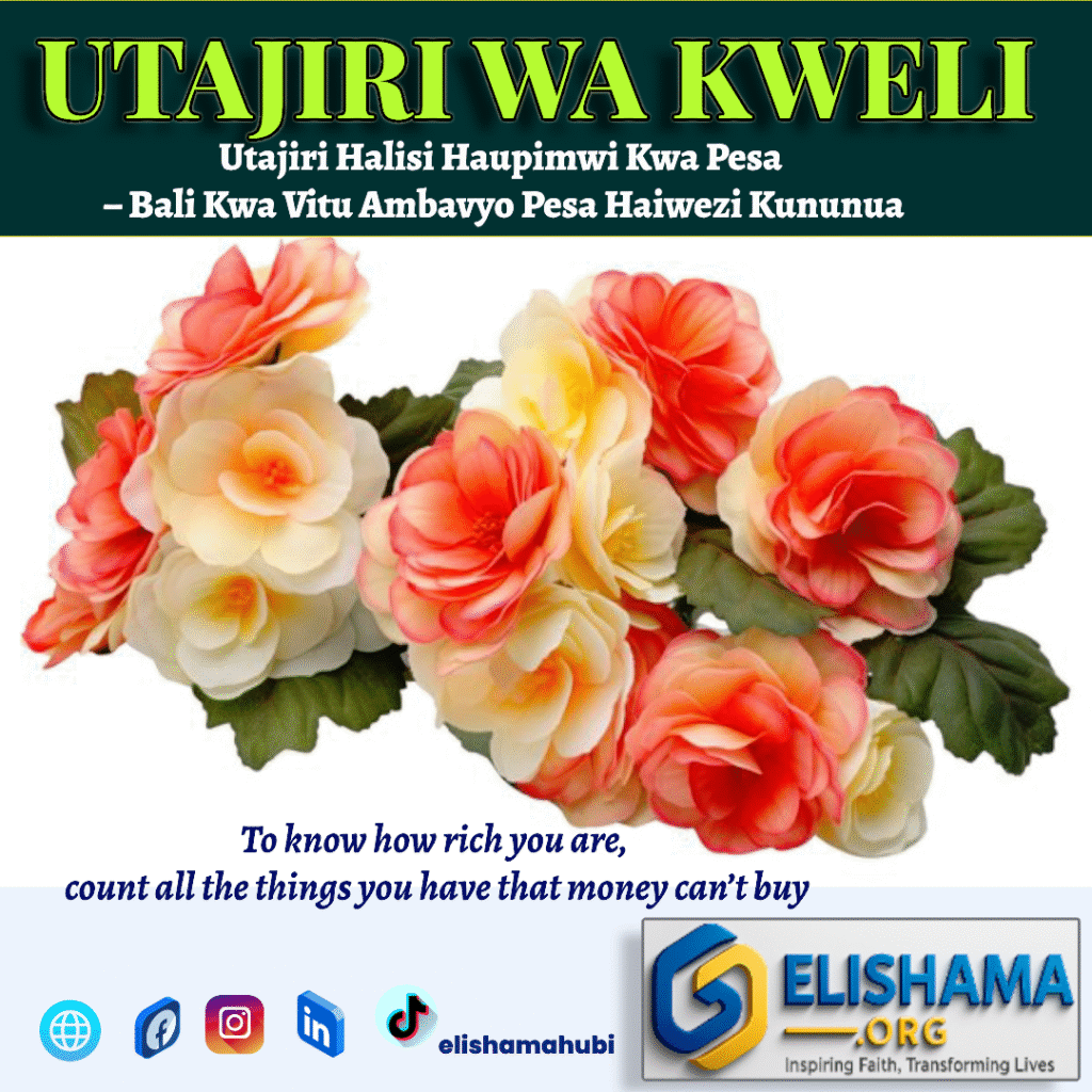 To know how rich you are, count all the things you have that money can’t buy Kielelezo cha Utajiri wa Kweli Kuna siku nilikutana na maneno haya yenye hekima: “Kama unataka kujua jinsi ulivyo tajiri, hesabu vitu vyote ulivyonavyo ambavyo pesa haiwezi kununua.” Nilikaa kimya kwa muda, nikitafakari. Nilijiuliza: Je, ni kweli utajiri wangu ni pesa, mali na vitu ninavyomiliki? Au ni kile kisichoweza kuguswa na mkono, kisichoweza kuwekwa benki wala kununuliwa dukani? Kadiri nilivyofikiri, ndivyo nilivyogundua kuwa dunia ya leo imepoteza maana ya utajiri wa kweli. Tunajenga nyumba kubwa lakini tuna mioyo midogo. Tunamiliki magari makubwa, lakini hatuna safari ya maana. Tunavaa vizuri, lakini ndani yetu tumechoka. Utajiri wa Uhai – Pumzi Unayopumua Kabla ya yote, utajiri mkubwa zaidi ni uzima.Wapo watu matajiri sana waliolala hospitalini wakiwa wameunganishwa na mashine, wakitamani tu pumzi moja ya asili kama yako.Na wewe leo hii, unapumua bure bila kulipia oksijeni — huo ni utajiri mkubwa kuliko dhahabu zote duniani. Kama Steve Jobs, mwanzilishi wa Apple, alivyoandika siku zake za mwisho: “Unaweza kuajiri mtu akaendesha gari lako, lakini huwezi kumwajiri mtu akapumua kwa ajili yako.” Afya yako, usingizi wako wa amani, na pumzi yako ya bure — ni mali zisizolipiwa ambazo pesa haiwezi kununua. Utajiri wa Upendo – Watu Wanaokupenda Kwa Moyo Kuna pesa inayoweza kununua zawadi, lakini haiwezi kununua upendo wa kweli.Pesa inaweza kukusanya watu mezani, lakini haiwezi kulazimisha mioyo yao ikutamani. Mtu kama Mother Teresa, hakuwa na utajiri wa kifedha, lakini alikuwa tajiri katika upendo na huruma.Alihudumia wagonjwa, maskini, na waliopuuzwa — akionyesha kwamba utajiri wa moyo unaweza kugusa roho zaidi ya pesa. Na wewe, kama una familia inayokupenda, rafiki anayekujali, au mtu anayekuombea kimya kimya — wewe ni tajiri zaidi ya wengi wanaoishi katika majumba makubwa lakini ndani yao ni utupu. Utajiri wa Amani ya Moyoni Ni heri kulala kwenye godoro la kawaida ukiwa na amani, kuliko kulala kwenye kitanda cha kifahari ukiwa na mawazo yanayokusumbua.Amani ya moyo ni zawadi inayotoka kwa Mungu — pesa haiwezi kununua wala kampuni haiwezi kuitengeneza. Kama Yesu Kristo alivyoambia wanafunzi wake: “Amani nawaachieni, amani yangu nawapa; si kama ulimwengu utoavyo.” (Yohana 14:27) Amani ya kweli haiji kwa kumiliki vitu vingi, bali kwa kujua uko salama mikononi mwa Mungu, hata unapokuwa na kidogo. Utajiri wa Heshima na Jina Zuri Heshima ni sarafu ambayo haichapishwi benki.Ni matokeo ya maisha yenye maadili, ukweli, na uadilifu.Mtu kama Nelson Mandela au Mwalimu Julius K. Nyerere, hawakuwa matajiri wa pesa, lakini walikuwa tajiri wa heshima duniani kote. Biblia inasema: “Jina jema ni bora kuliko mali nyingi.” (Mithali 22:1) Je, jina lako lina thamani gani mbele ya watu na mbele za Mungu?Kuna watu wamepoteza heshima kwa tamaa ya utajiri wa haraka, na sasa hawana kitu — si pesa, si heshima. Utajiri wa Wakati – Mali Ambayo Haiwezi Kurudi Kuna kitu pesa haiwezi kununua — wakati.Huwezi kuinunua saa ya jana, wala kuongeza sekunde katika maisha yako. Mtu mwenye pesa anaweza kumlipa daktari, lakini hawezi kulipa dakika moja zaidi ya uhai wake.Hivyo tumia muda wako vizuri — kuwa na familia yako, omba, soma, tafakari, cheka, na saidia wengine.Kwa sababu pesa inapotea, lakini wakati unaotumika vizuri hujenga urithi. Utajiri wa Imani na Tumaini Wakati mwingine, mtu anaweza kupoteza kila kitu — kazi, mali, afya — lakini kama bado ana imani, bado ana kila kitu.Imani ni nguvu ya roho inayomfanya mtu kusimama hata katikati ya dhoruba. Martin Luther King Jr. aliwahi kusema: “Faith is taking the first step even when you don’t see the whole staircase.”(Imani ni kuchukua hatua ya kwanza hata kama huoni ngazi yote.) Watu wenye imani wanaishi na tumaini. Na tumaini ndilo linawafanya wawe na nguvu hata katika giza. Utajiri wa Maadili na Tabia Njema Tabia njema ni nguo ya heshima.Mtu mwenye maadili mazuri ni bora kuliko mwenye mali nyingi lakini hana utu.Pesa inaweza kukupa cheo, lakini maadili ndiyo yanayokupa heshima ya kudumu. Mtu kama Desmond Tutu, aliheshimika kwa maneno yake ya upendo na msamaha — akithibitisha kwamba tabia njema inajenga dunia bora kuliko pesa. Utajiri wa Ndoto na Kusudi Kuna watu hawana kitu cha kushikika, lakini wana ndoto kubwa zinazobeba vizazi.Pesa inaweza kununua vitanda, lakini haiwezi kununua usingizi wa amani. Inaweza kununua vitabu, lakini si hekima.Ndoto zako, kusudi lako, na maono yako — ni mali kubwa sana ambayo haiwezi kupimwa kwa thamani ya fedha.  – Utajiri Usioharibika Mwishowe, maisha haya yatatufundisha kitu kimoja:Vitu tulivyovikimbilia vitabaki hapa, lakini vitu vilivyokuwa ndani yetu ndivyo vitakavyobaki milele.Utajiri wa moyo, amani, upendo, imani, na utu — ndio mali isiyo na kodi, isiyopungua, isiyopotea. Kama unayo afya, amani, familia, rafiki wa kweli, na uhusiano mzuri na Mungu — basi wewe ni tajiri kuliko unavyofikiri.